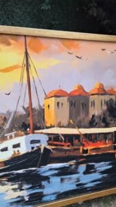 Her tablo, katman katman uygulanan dokuyla hazırlanır; fırça ve spatula izleri sayesinde ışığın yüzeyde bıraktığı uyum bakışlarınızı kendine çeker. Kabartmalı yüzey, gün ışığında ve farklı açılarda değişen bir görsel şölen yaratır.