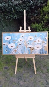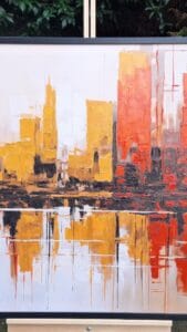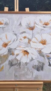 Her tablo, katman katman uygulanan dokuyla hazırlanır; fırça ve spatula izleri sayesinde ışığın yüzeyde bıraktığı uyum bakışlarınızı kendine çeker. Kabartmalı yüzey, gün ışığında ve farklı açılarda değişen bir görsel şölen yaratır.