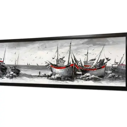 Kırmızı Şeritli Tekneler | Kanvas Tablo | Cam Tablo | Mdf Tablo | B08039