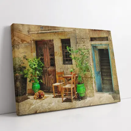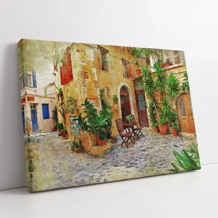 Akdeniz Taş Ev Avlu | Kanvas Tablo | Cam Tablo | Mdf Tablo | A07224