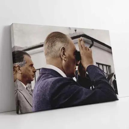 Atatürk Dürbünle Bakarken | Kanvas Tablo | Cam Tablo | Mdf Tablo | A02196
