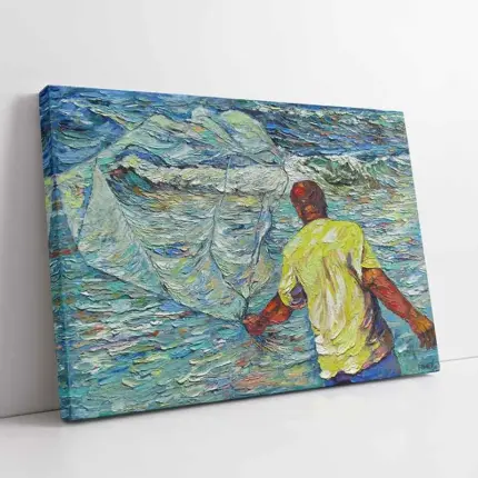 Balık Ağı Atan Balıkçı | Kanvas Tablo | Cam Tablo | Mdf Tablo | B22588