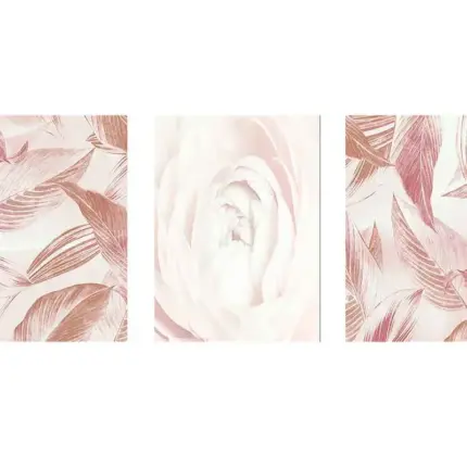 Beyaz Gül Ve Yapraklar Üçlü Kanvas Tablo | Cam Tablo | Mdf Tablo Seti | B33166