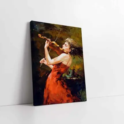 Kırmızı Giymiş Keman Çalan Kadın | Kanvas Tablo | Cam Tablo | Mdf Tablo | B11002