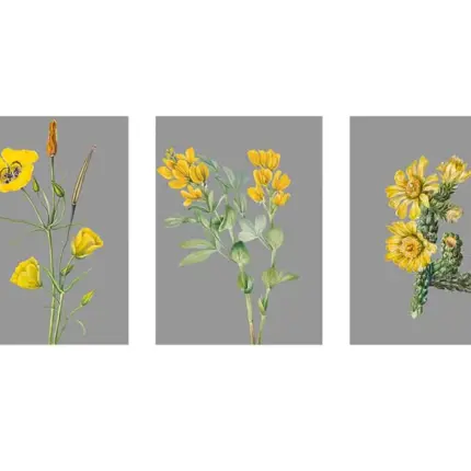 Gri Zemin Sarı Çiçekler Üçlü Kanvas Tablo | Cam Tablo | Mdf Tablo Seti | B33146