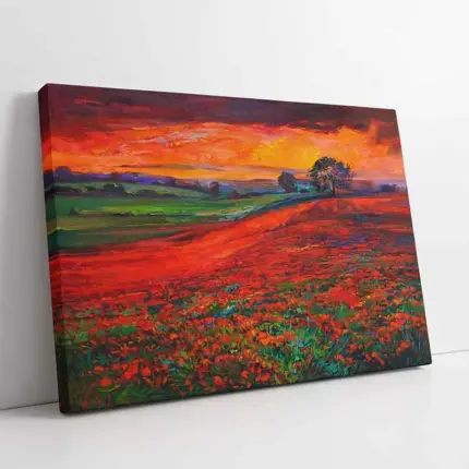 Kırmızı Çiçekler Ve Tek Ağaç | Kanvas Tablo | Cam Tablo | Mdf Tablo | A20243
