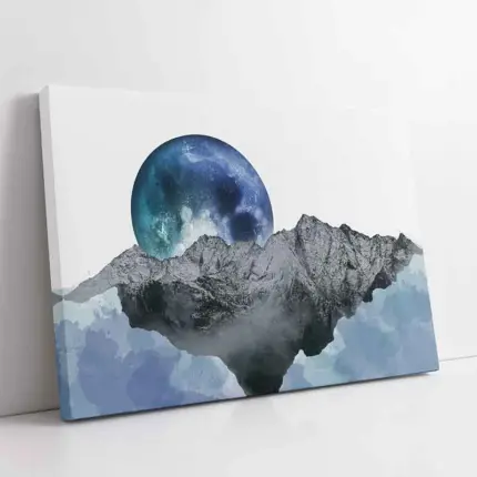 Mavi Ay Ve Dağ Modern Manzara | Kanvas Tablo | Cam Tablo | Mdf Tablo | B33250