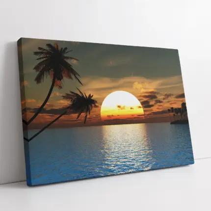 Palmiye Ağaçlı Deniz Manzası | Kanvas Tablo | Cam Tablo | Mdf Tablo | A20565