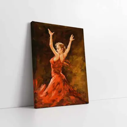 Kırmızı Giymiş Dans Eden Kadın | Kanvas Tablo | Cam Tablo | Mdf Tablo | B06009
