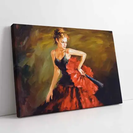 Kırmızı Giymiş Dansçı Kadın | Kanvas Tablo | Cam Tablo | Mdf Tablo | B06023