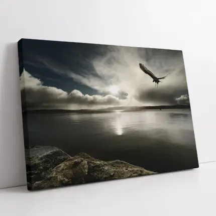 Gece Vakti Gökyüzünde Kartal | Kanvas Tablo | Cam Tablo | Mdf Tablo | A20288