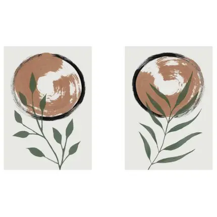 Bitki Ve Güneş İkili Kanvas Tablo | Cam Tablo | Mdf Tablo Seti | B33222