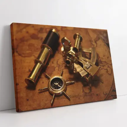 Sekstant Dürbün Ve Harita | Kanvas Tablo | Cam Tablo | Mdf Tablo | A12070