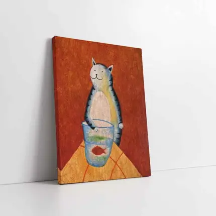 Kedi Ve Balık | Kanvas Tablo | Cam Tablo | Mdf Tablo | B05217