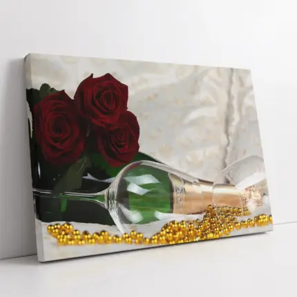 Şarap Kadehleri Ve Kırmızı Güller | Kanvas Tablo | Cam Tablo | Mdf Tablo | A03328