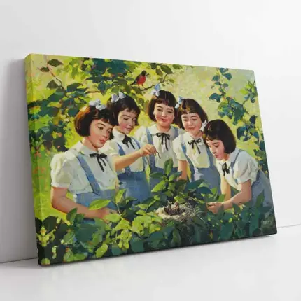 Yağlı Boya Dokulu Tablo Dalda Muhabbet Kuşları Siyah Çerçeveli