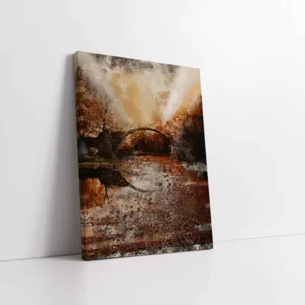 Sulu Boya Taş Köprü Nehir Manzarası | Kanvas Tablo | Cam Tablo | Mdf Tablo | B33206