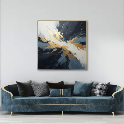 Yağlı Boya Dokulu Tablo Siyah Mavi Altın Soyut Altın Çerçeveli