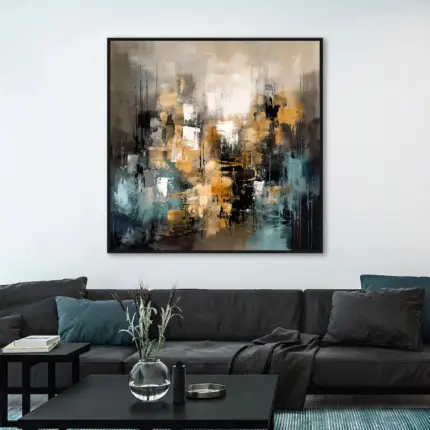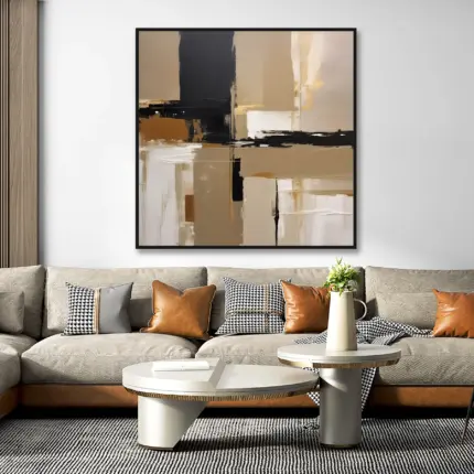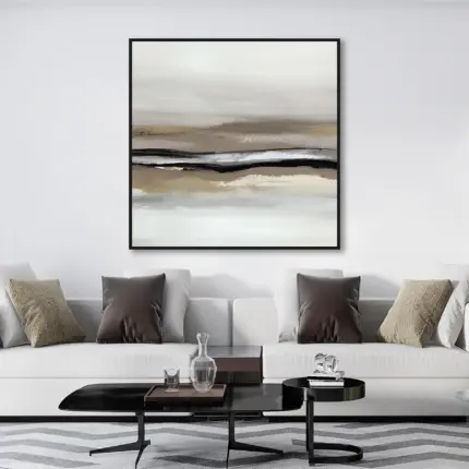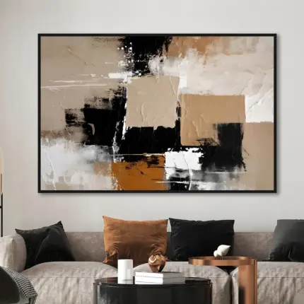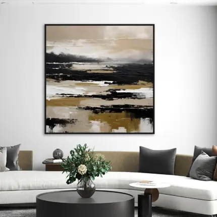 Yağlı Boya Dokulu Tablo Soyut Bej Manzara Siyah Çerçeveli