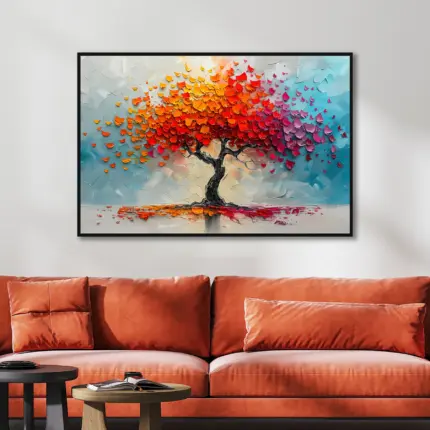 Yağlı Boya Dokulu Tablo Tek Renkli Ağaç Siyah Çerçeveli
