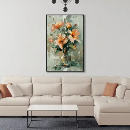 Yağlı Boya Dokulu Tablo Vazoda Çiçekler Siyah Çerçeveli