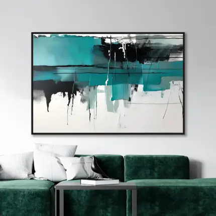 Yağlı Boya Dokulu Tablo Yeşil Siyah Beyaz Soyut Siyah Çerçeveli