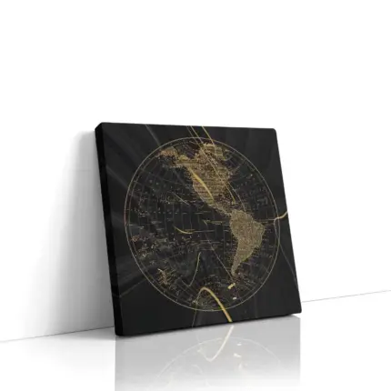 Tablosan Altın Detaylı Dünya Küre | Kanvas Tablo | Cam Tablo | Mdf Tablo | B33384