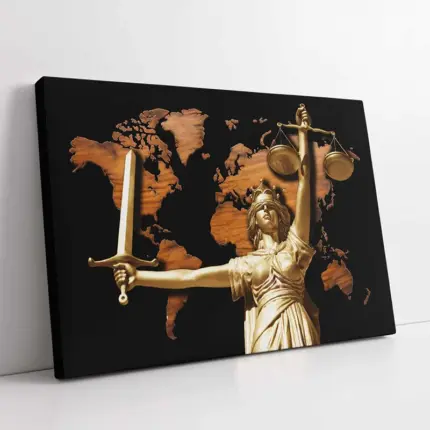 Tablosan Adalet Tanrıçası Ve Dünya Haritası | Kanvas Tablo | Cam Tablo | Mdf Tablo | B33396