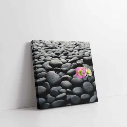 Beyaz Taş Ve Mor Çiçekler | Kanvas Tablo | Cam Tablo | Mdf Tablo | A03424