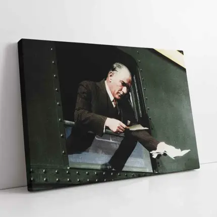 Atatürk Tren Camından Mektup Alırken | Kanvas Tablo | Cam Tablo | Mdf Tablo | A02107