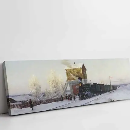 Karlı Havada Tren Ve Yolcular | Kanvas Tablo | Cam Tablo | Mdf Tablo | B17098