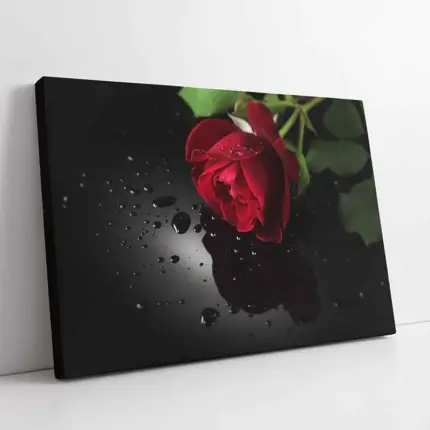 Siyah Fon Üzerinde Kırmızı Gül | Kanvas Tablo | Cam Tablo | Mdf Tablo | A03202