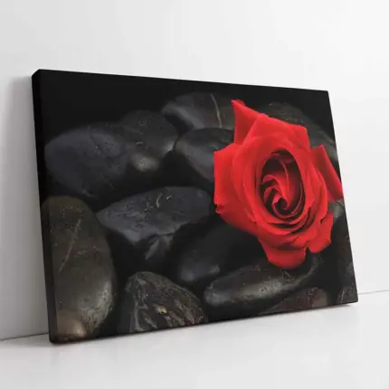 Taşın Üzerinde Pembe Gül | Kanvas Tablo | Cam Tablo | Mdf Tablo | A03249