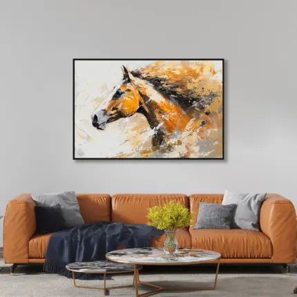 Yağlı Boya Dokulu Tablo Kahverengi At Siyah Çerçeveli