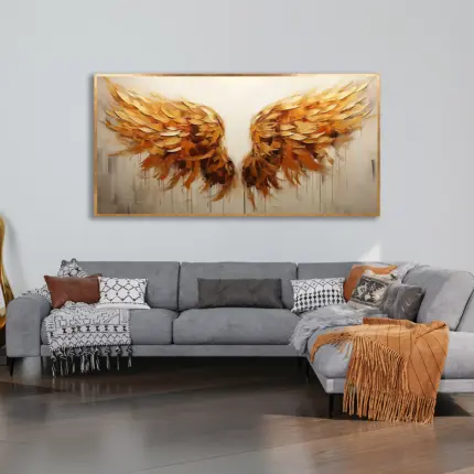 Yağlı Boya Dokulu Tablo Kanatlar Melek Kanadı Altın Çerçeveli