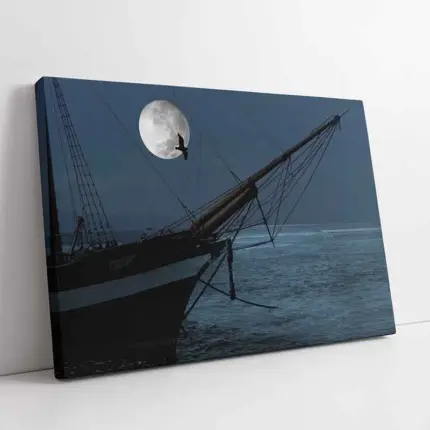 Dolunayda Yüzen Kalyon | Kanvas Tablo | Cam Tablo | Mdf Tablo | A01028