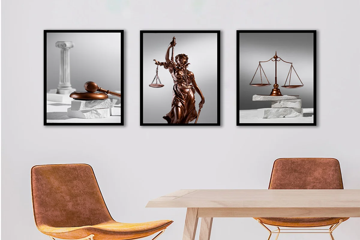 Adalet Simgeleri Üçlü Kanvas Tablo | Cam Tablo | Mdf Tablo Seti | B33392