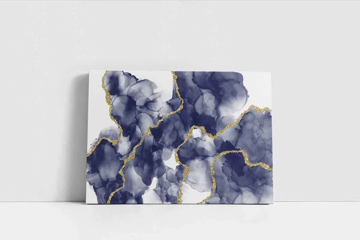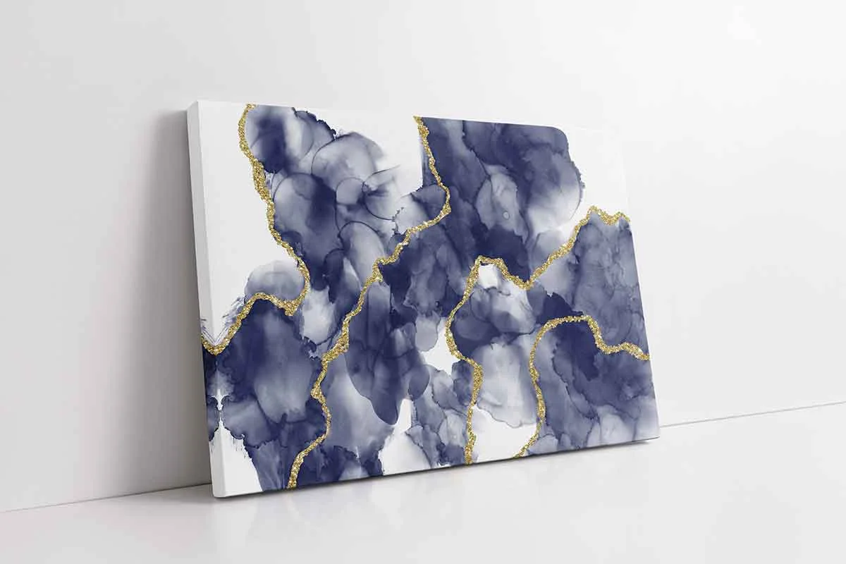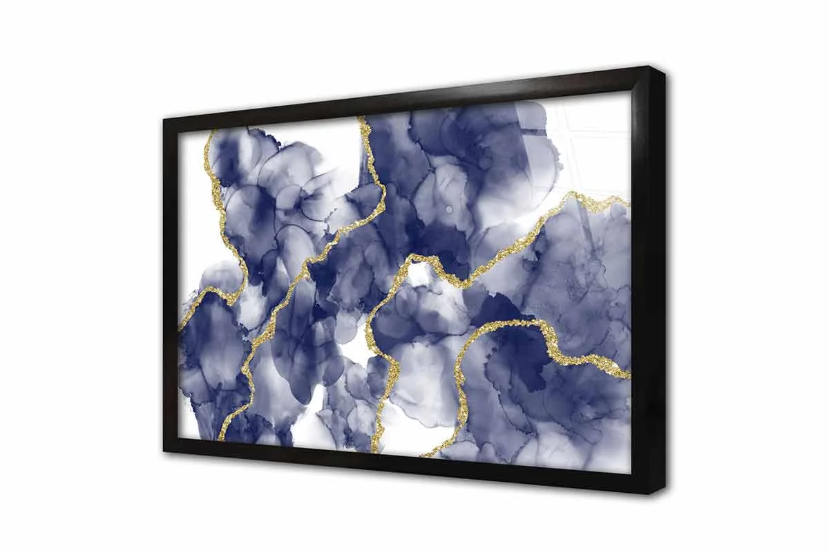 Altın Detaylı Lacivert Soyut | Kanvas Tablo | Cam Tablo | Mdf Tablo | B33238