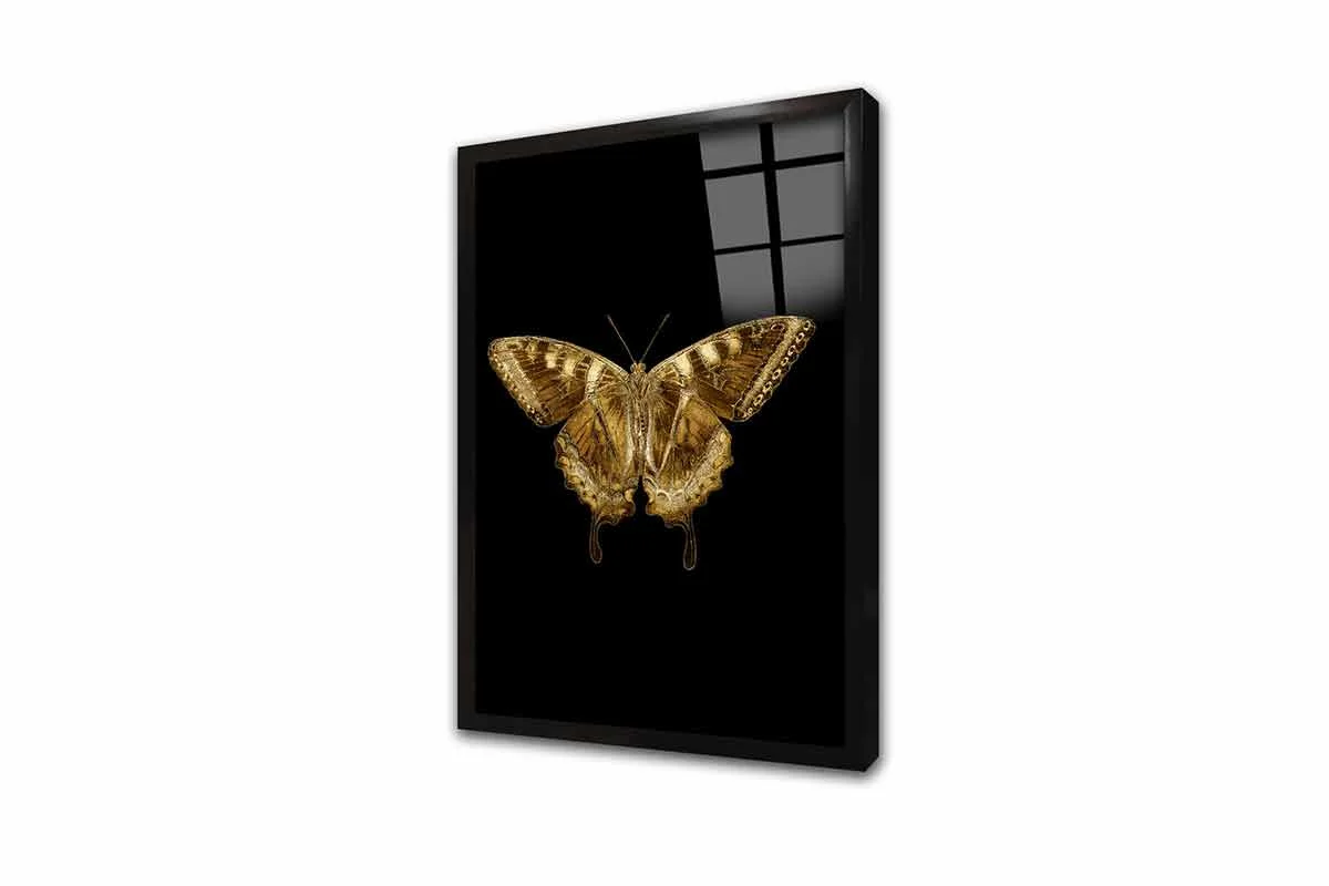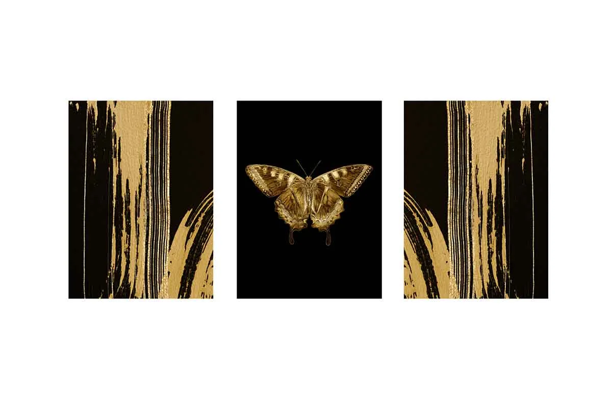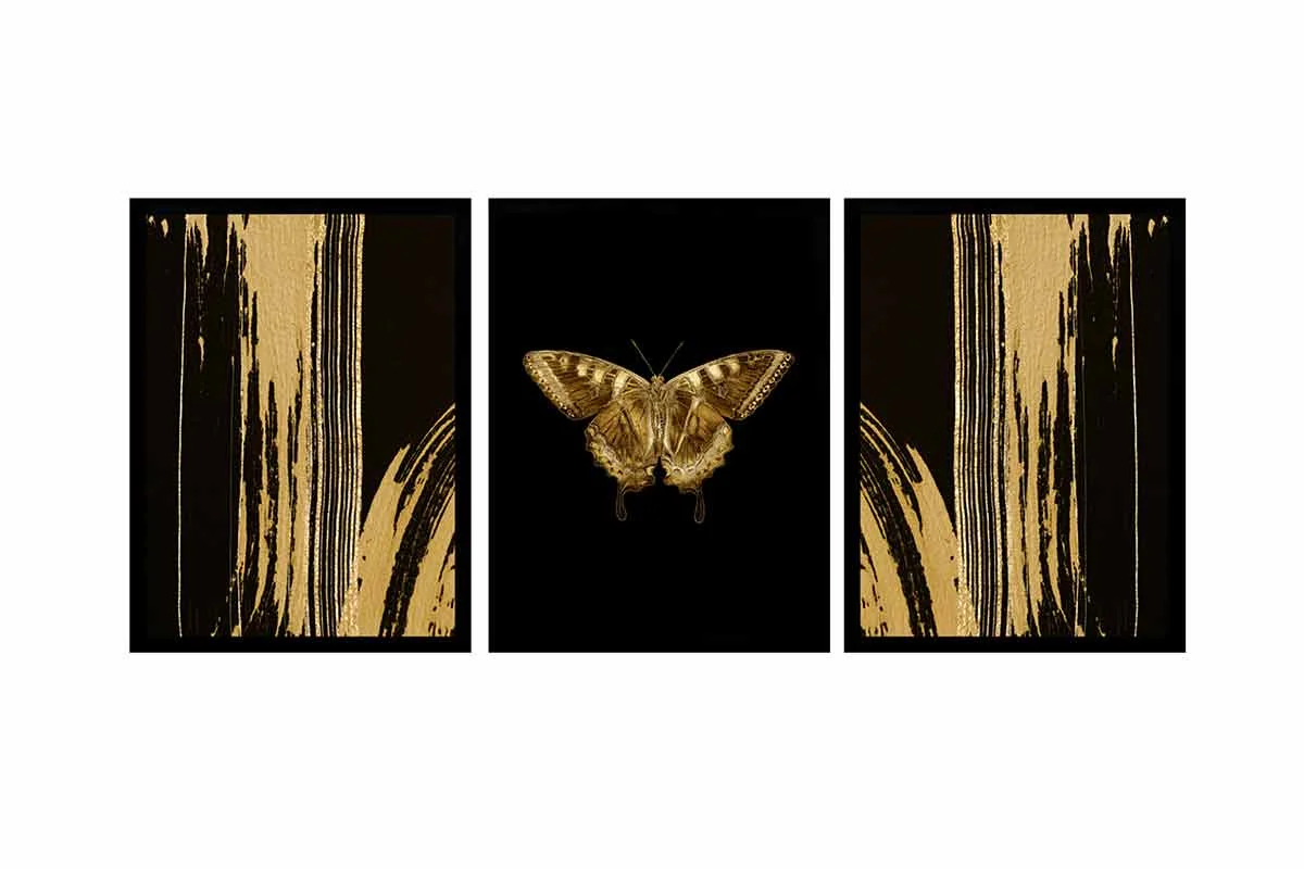 Altın Kelebek Ve Soyut Üçlü Kanvas Tablo | Cam Tablo | Mdf Tablo Seti | B33140