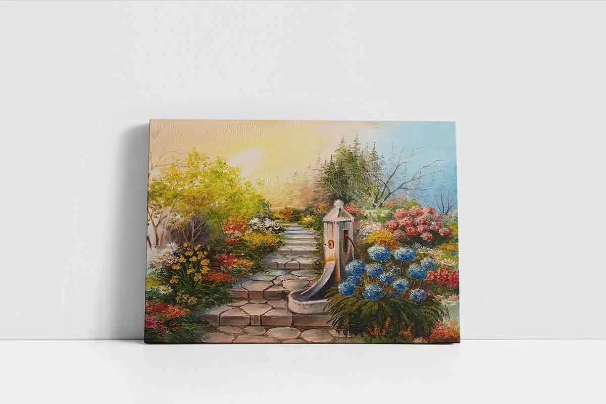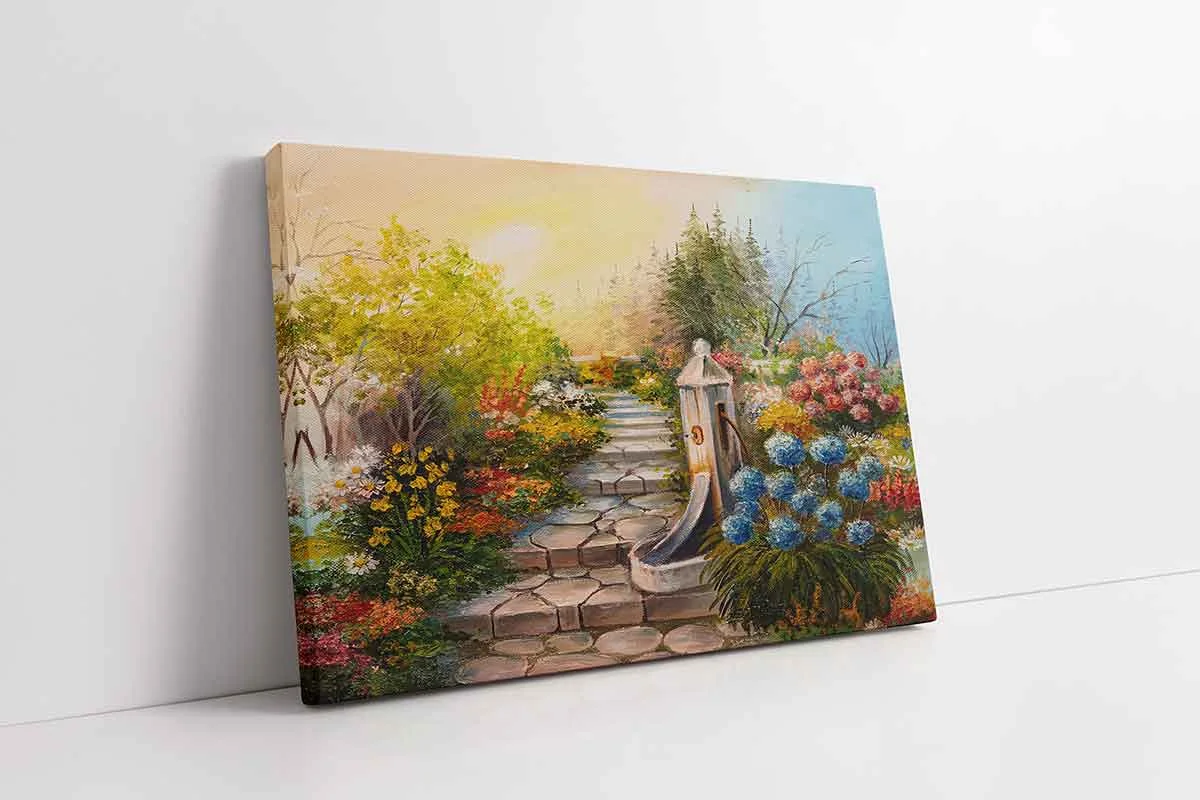Arnavut Kaldırımda Çiçekler | Kanvas Tablo | Cam Tablo | Mdf Tablo | B17119