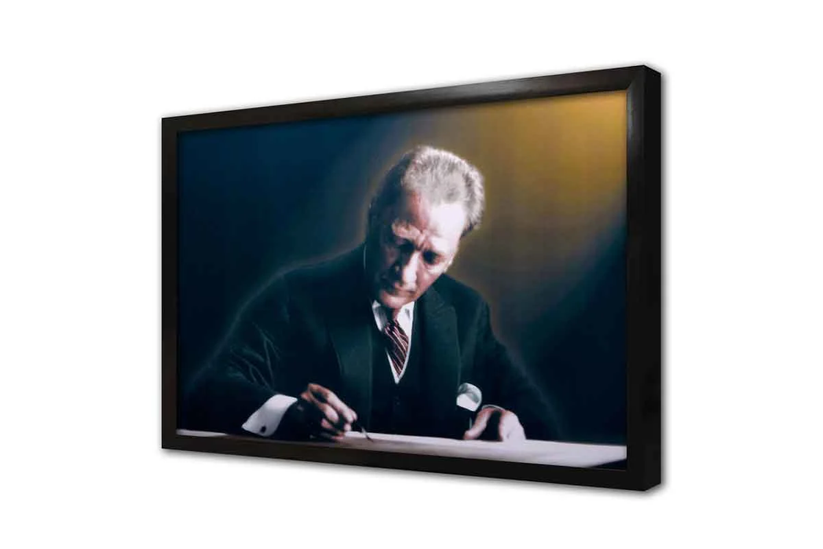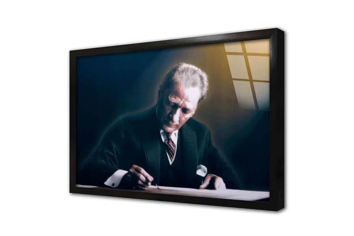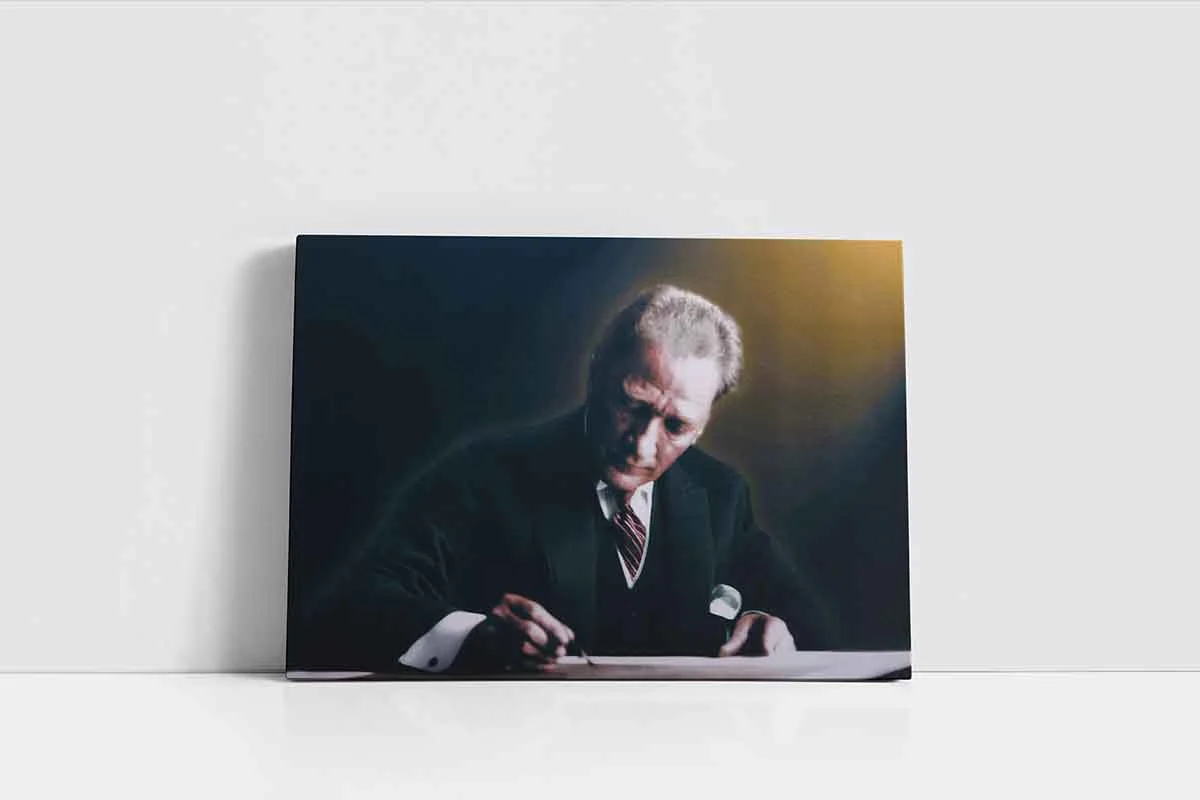 Atatürk Çalışma Masasında İmza Atarken | Kanvas Tablo | Cam Tablo | Mdf Tablo | A02138