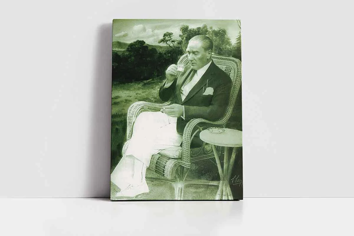 Atatürk Kahve İçerken | Kanvas Tablo | Cam Tablo | Mdf Tablo | A02124