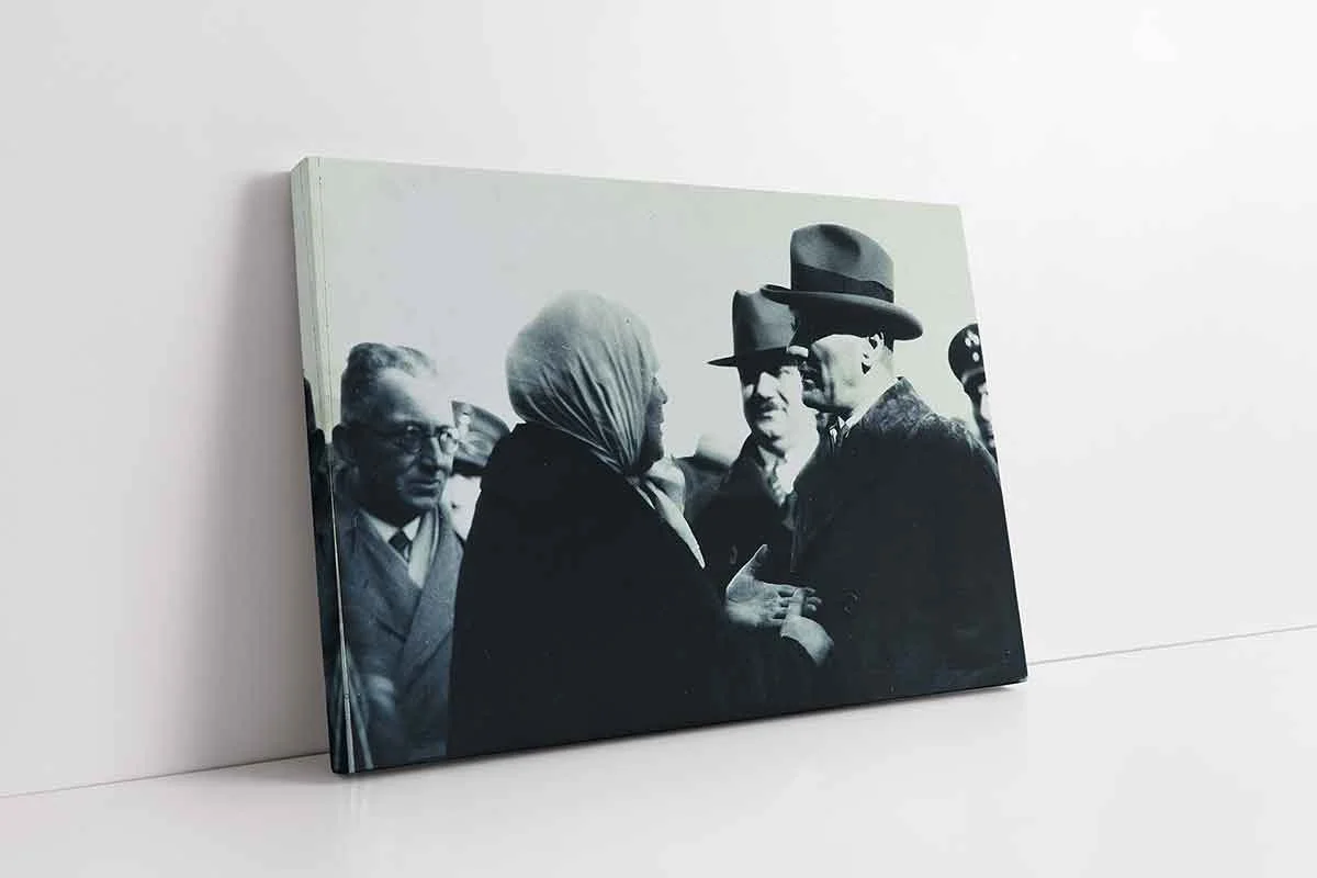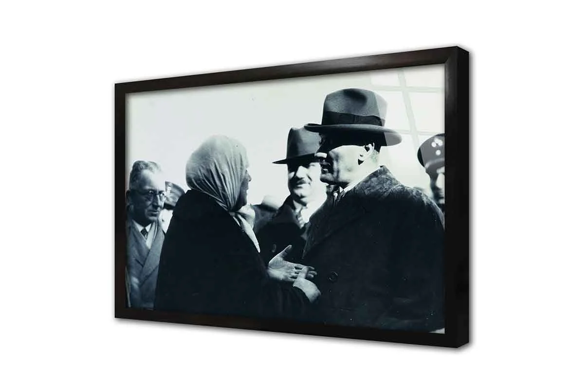 Atatürk Yaşlı Kadınla Konuşurken | Kanvas Tablo | Cam Tablo | Mdf Tablo | A02048
