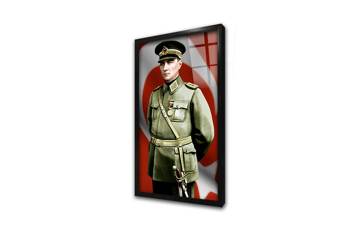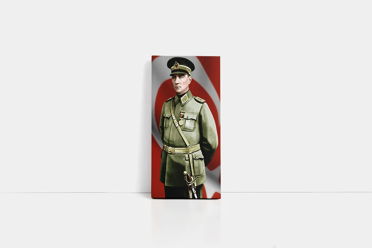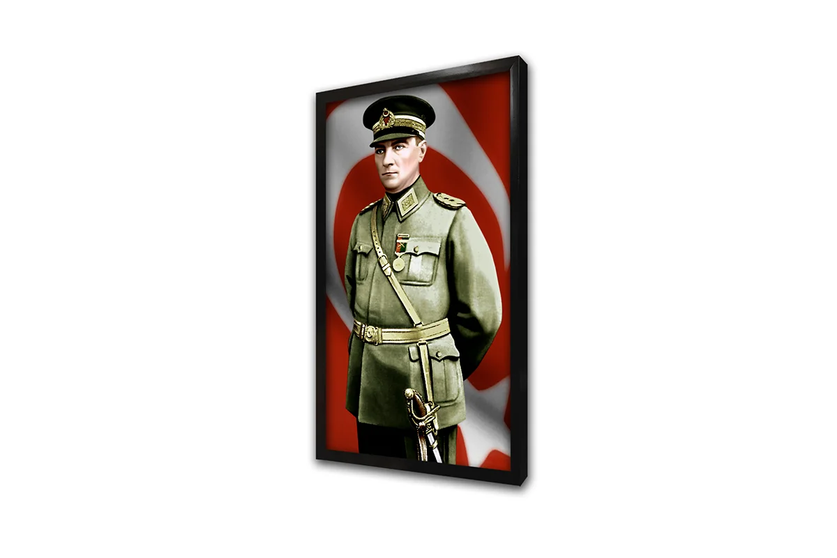 Ay Yıldızlı Bayrak Önünde Genç Atatürk | Kanvas Tablo | Cam Tablo | Mdf Tablo | A02090