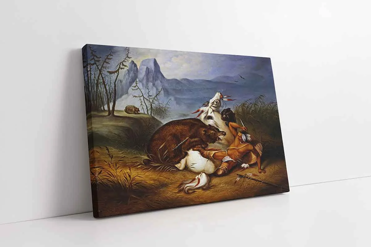 Ayı Ve Kızılderili | Kanvas Tablo | Cam Tablo | Mdf Tablo | B22610