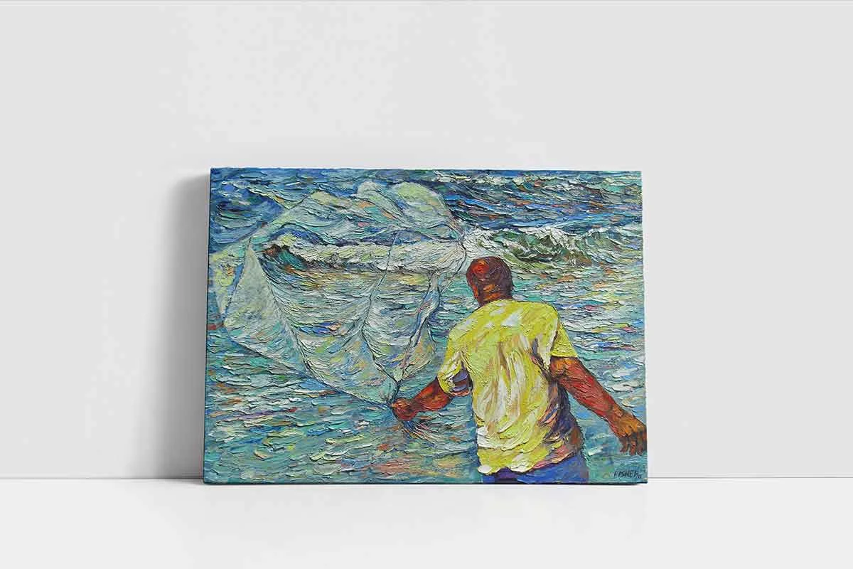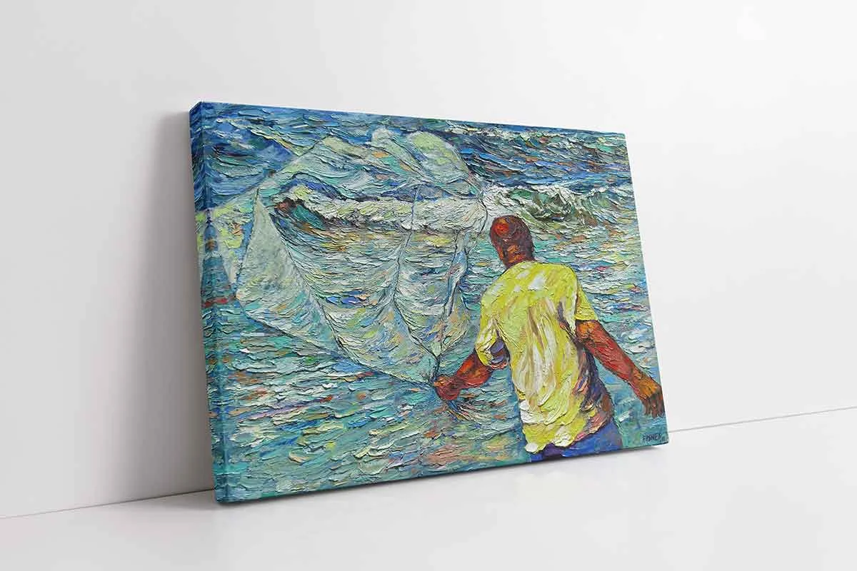 Balık Ağı Atan Balıkçı | Kanvas Tablo | Cam Tablo | Mdf Tablo | B22588