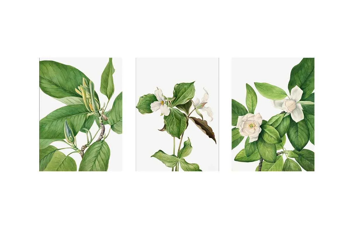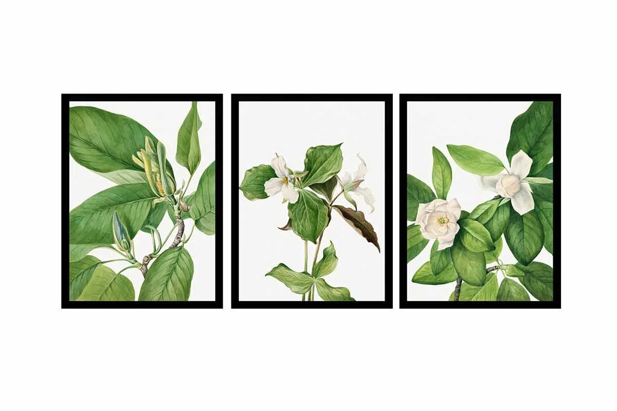 Beyaz Çiçekler Üçlü Kanvas Tablo | Cam Tablo | Mdf Tablo Seti | B33144