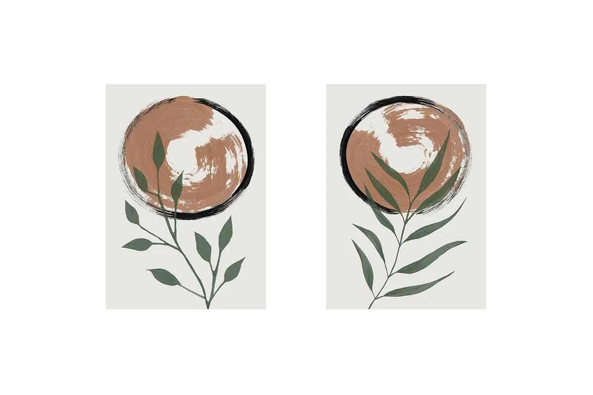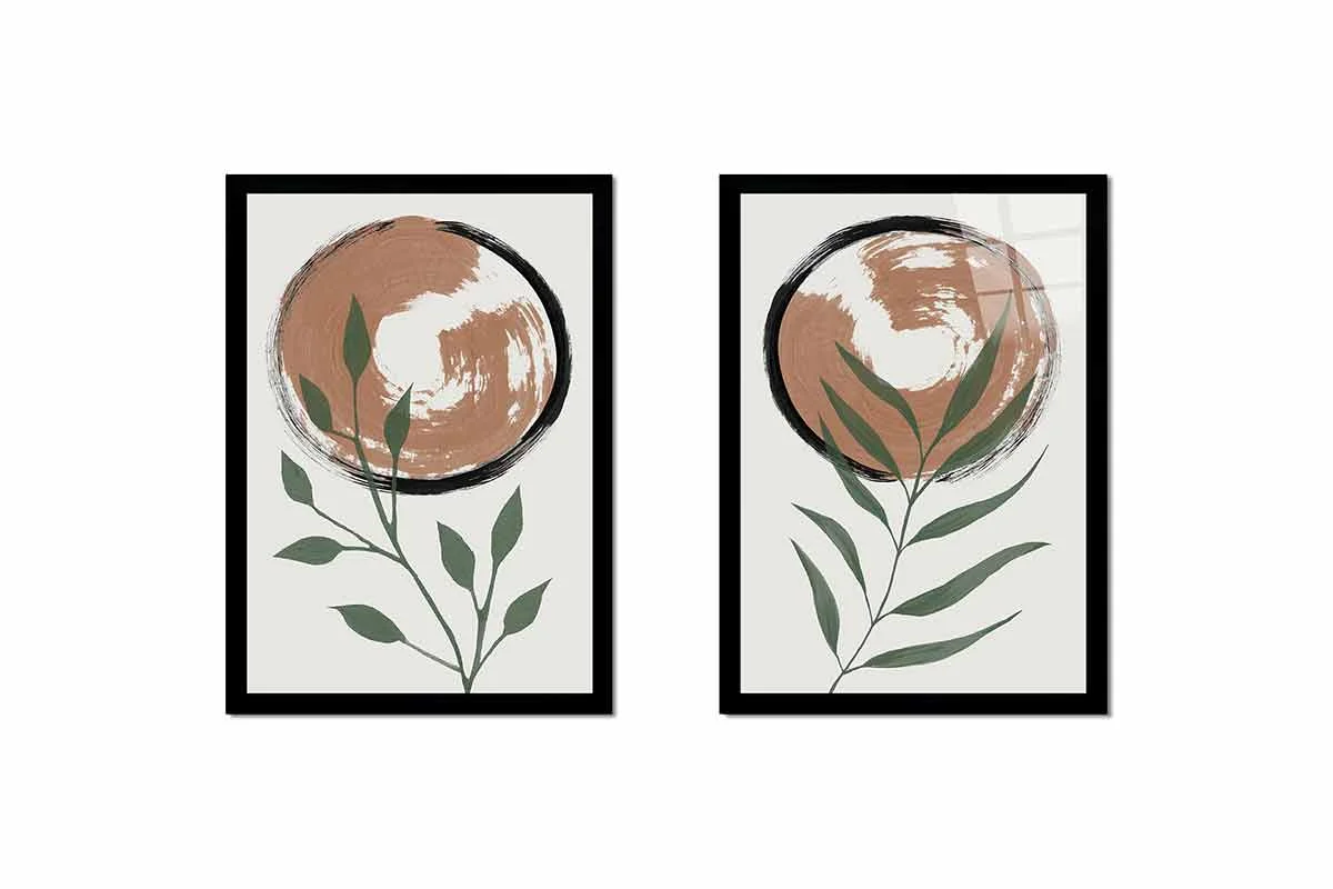Bitki Ve Güneş İkili Kanvas Tablo | Cam Tablo | Mdf Tablo Seti | B33222