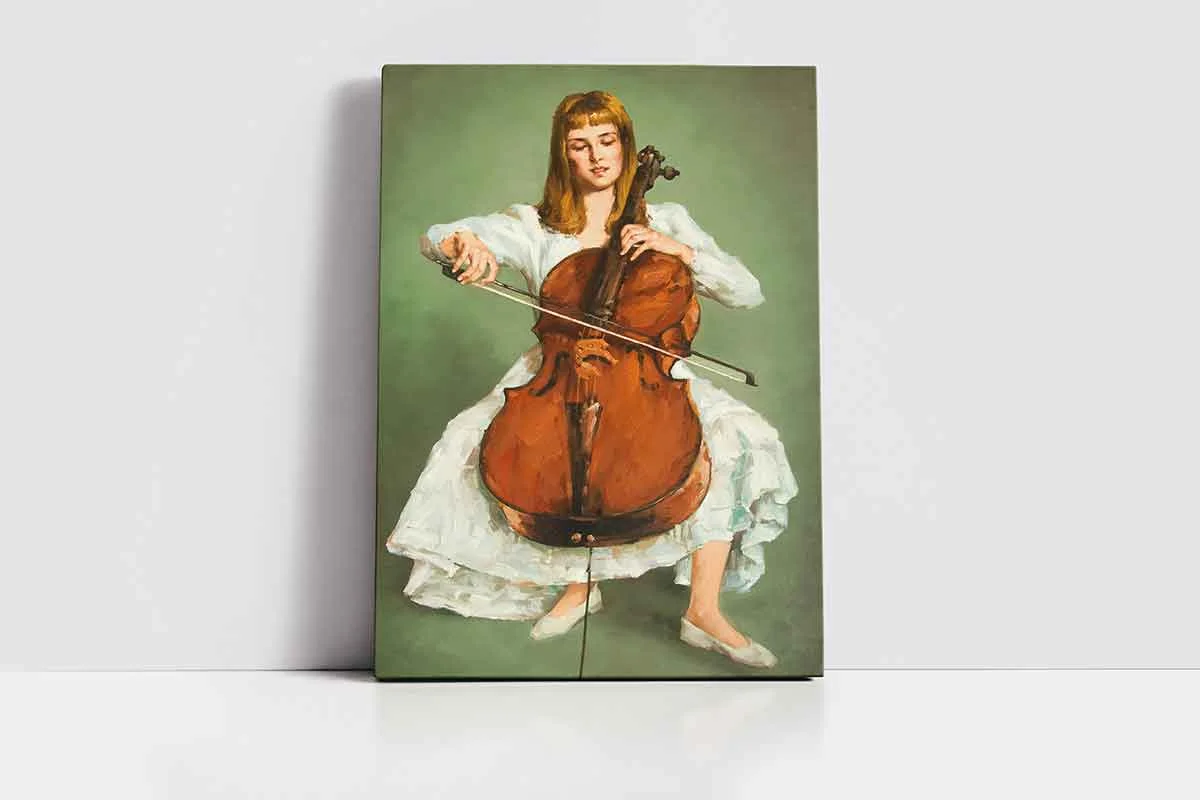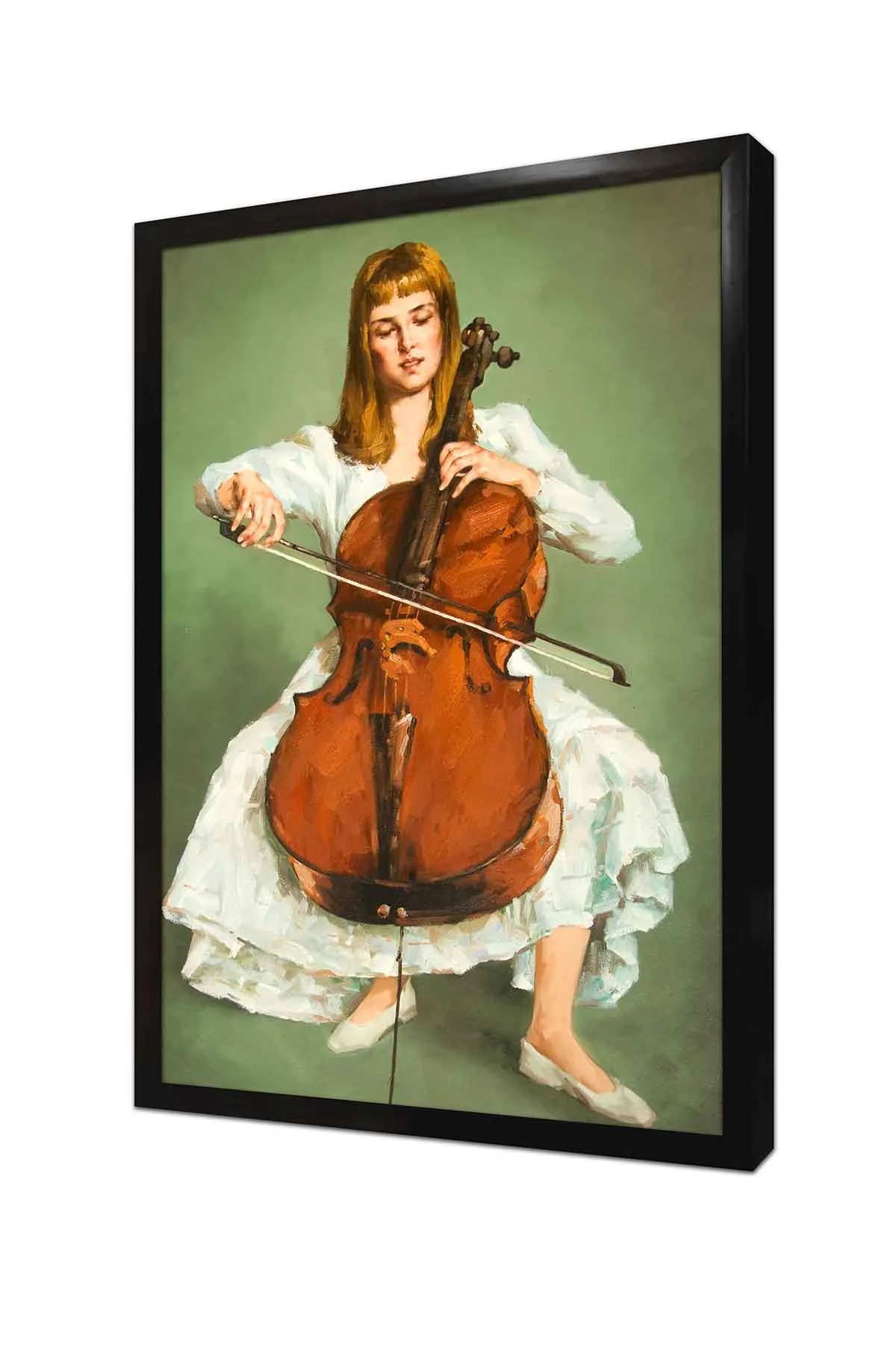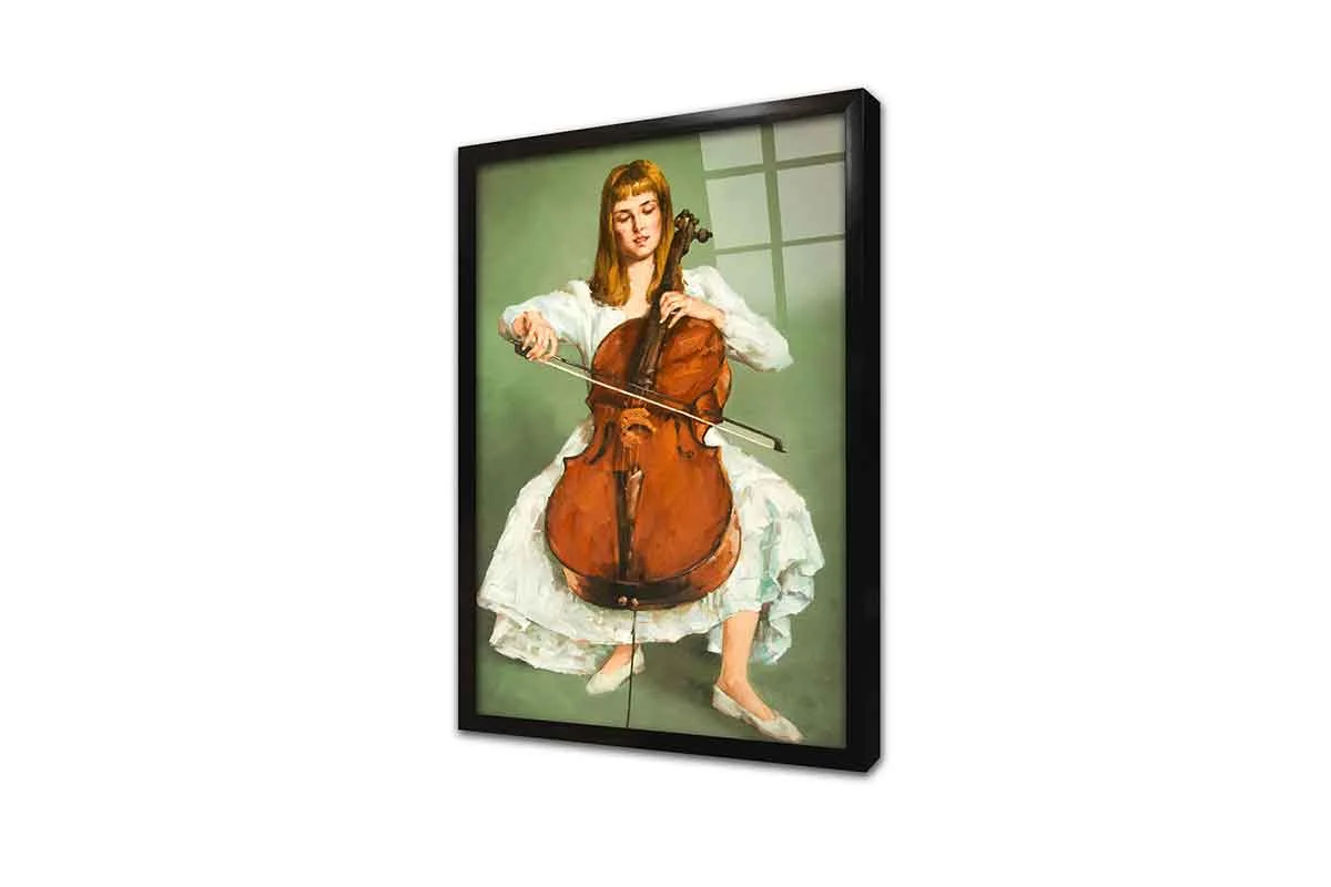 Çello Çalan Beyaz Giymiş Kadın | Kanvas Tablo | Cam Tablo | Mdf Tablo | B11005