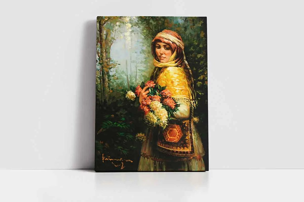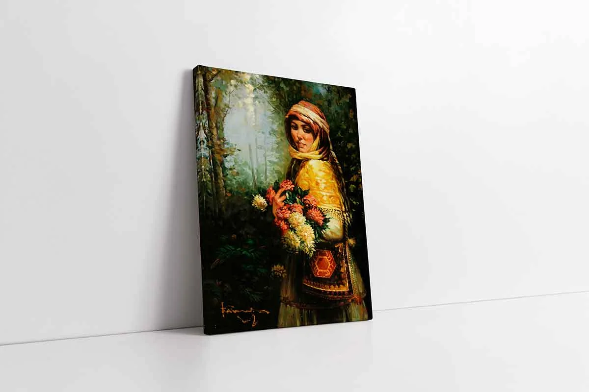 Çiçek Toplamış Kadın | Kanvas Tablo | Cam Tablo | Mdf Tablo | B13063